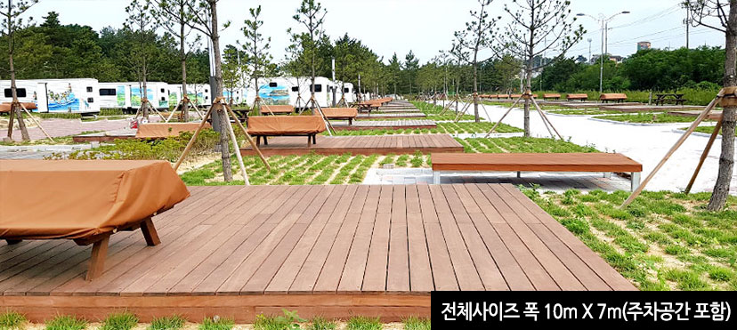 | - 기준 : 텐트 1동 차량 1대 총수량 : 84동 - 데크사이즈 - 4m X 5m / 총사이즈 : 7m X 10m (주차공간포함) - 전기사용가능 : 릴선 15m이상 개인지참 | |||