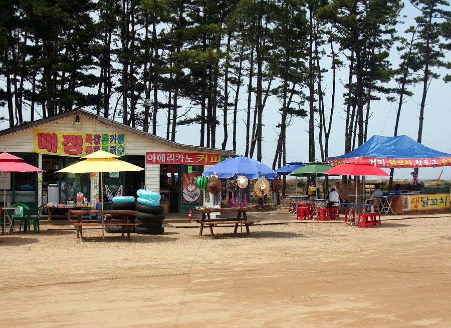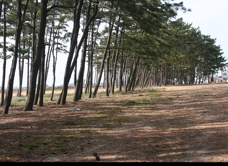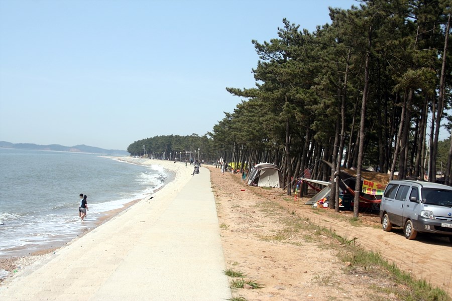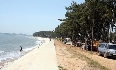 아름다운 백사장바닷가옆 울창한 소나무 아래에 있는 특급 캠핑장입니다