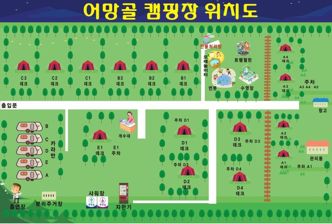 갤러리 사진출처 : 어망골 캠핑장 홈페이지 (사진을 클릭하면 큰 이미지를 볼 수 있습니다.)