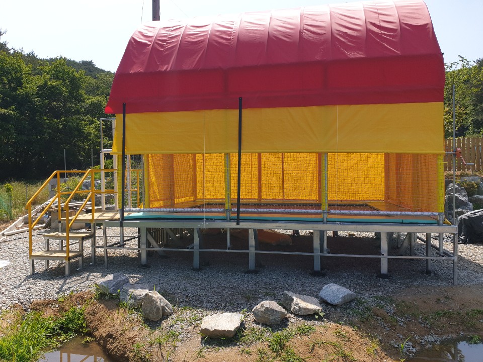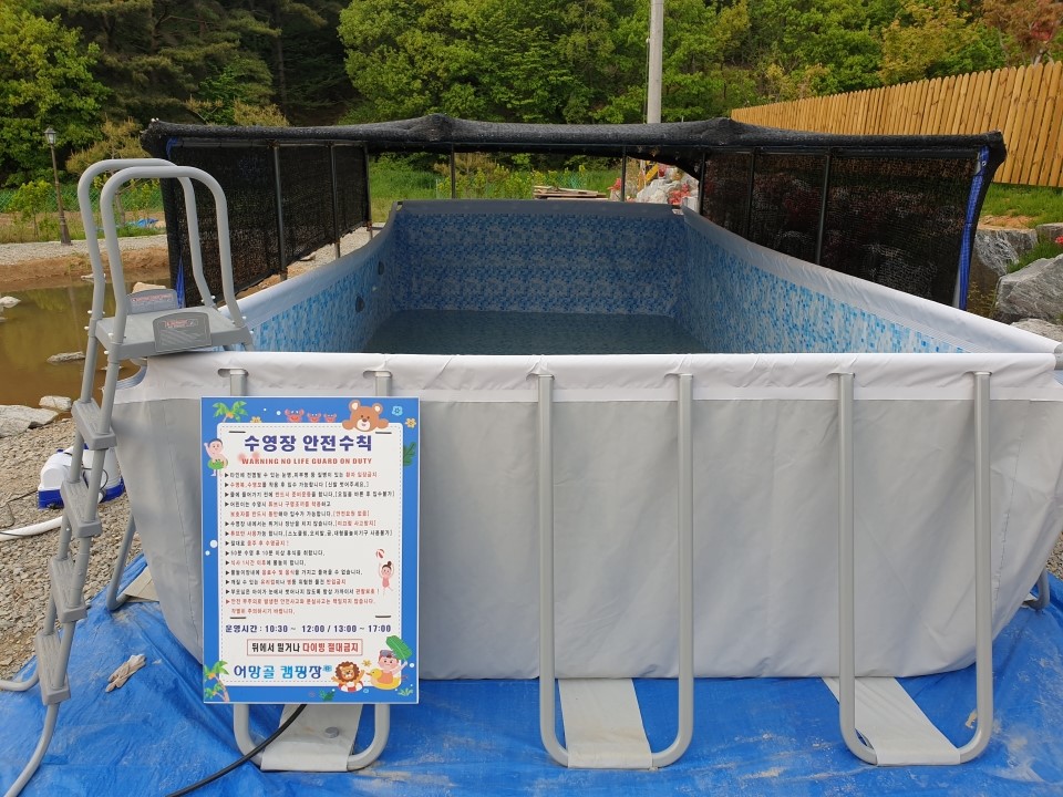저희 어망골캠핑장 대부분의 시설은 주인이 직접 A급 제품들로 시공하였으며 ( 데크, 수영장, 카라반, 담장, 탈의실 리모델링, 개수대, 전기공사, 정화조, 토목공사 등) 손님들의 안전을 최우선적으로 생각하여 설계 및 설치하였습니다.