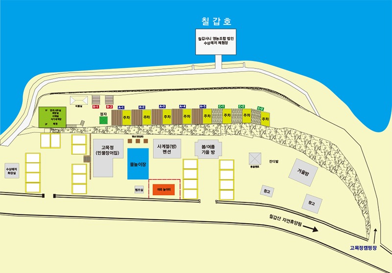 고목정 단지내에는 민물장어 전문점 그리고 매점, 펜션&캠핑장을 운영하고 있습니다.