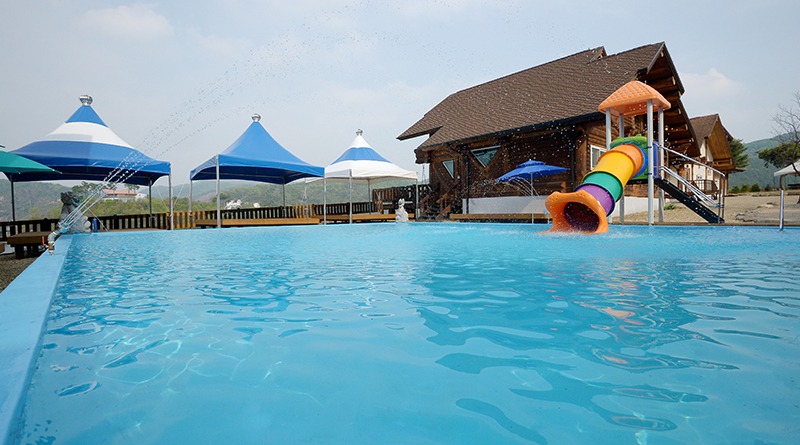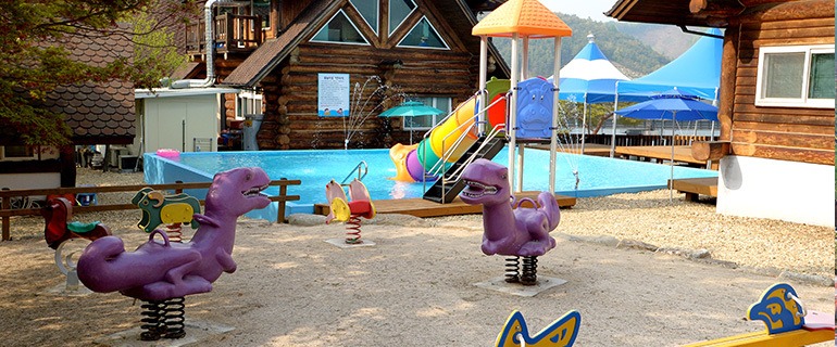 펜션과 캠핑장에는 물놀이장과 놀이터가 준비되어 있습니다.
