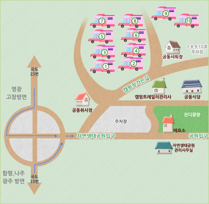 갤러리 사진출처 : 함평자연생태공원 캠핑장 홈페이지 (사진을 클릭하면 큰 이미지를 볼 수 있습니다.)